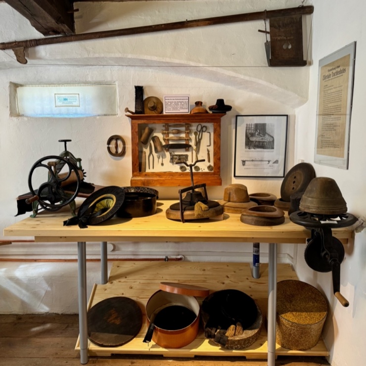 Die Gerätschaften und Gegenstände alter Handwerke wie Federkielsticker, Tischler, Schlosser, Klosterarbeiten, Fassbinder, Wagner, Hutmacher oder Seiler sind zu sehen. Als Besonderheit wird auch eine „Mozartorgel“ aus Hall in Tirol gezeigt und dazu auch die Geschichte erklärt.